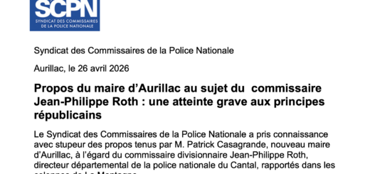 Le Syndicat des Commissaires de la Police Nationale, par la voix de son secrétaire général Frédéric Lauze, réagit aux propos tenus par le maire d’Aurillac, Patrick Casagrande, au sujet du directeur de la Police nationale du Cantal, le commissaire divisionnaire Jean-Philippe Roth.