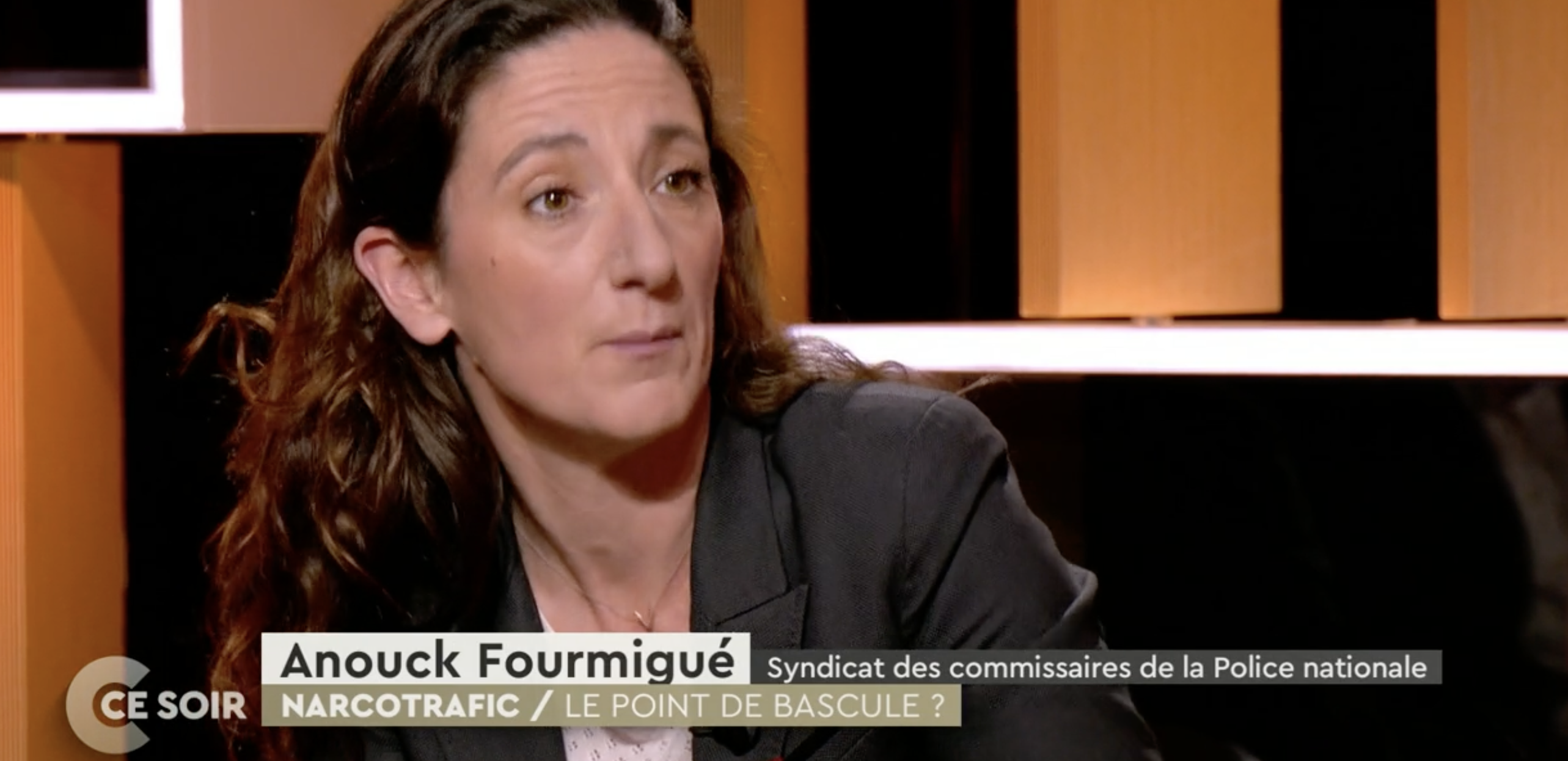 Anouk Fourmigué, secrétaire générale adjointe du SCPN est longuement intervenue dans l’émission “C’est ce soir” du 17 novembre sur France 5 dont le sujet était : “Narcotrafic : la France a-t-elle perdu la guerre?”. La commissaire de Police était invitée aux côtés, notamment, d’Eric Dupont-Moretti, ancien garde des sceaux et avocat et de Frédéric Ploquin, journaliste spécialisé dans la criminalité organisée.